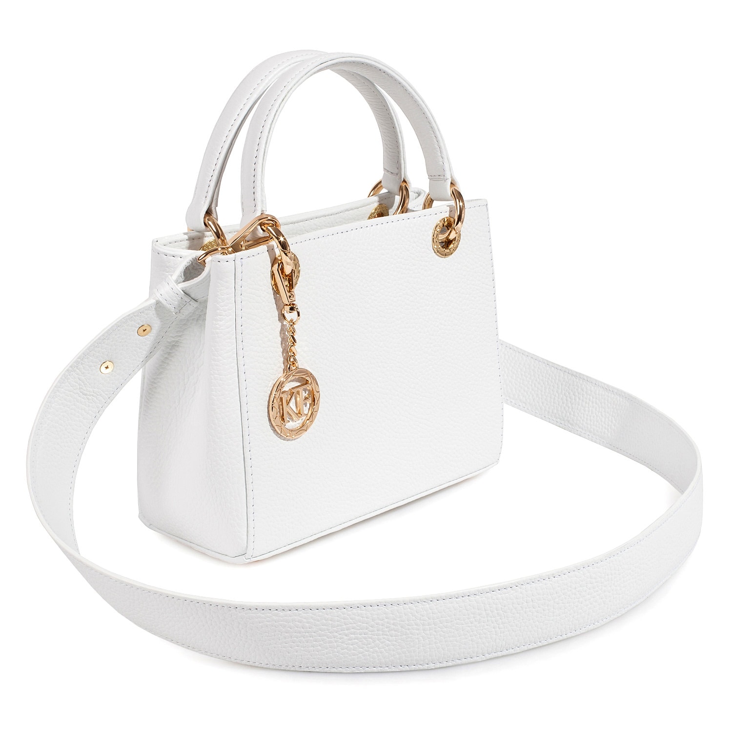 Leather Top Handle Bag, White Leather Handbag Top Handle, Women's Leather Bag KF-3685