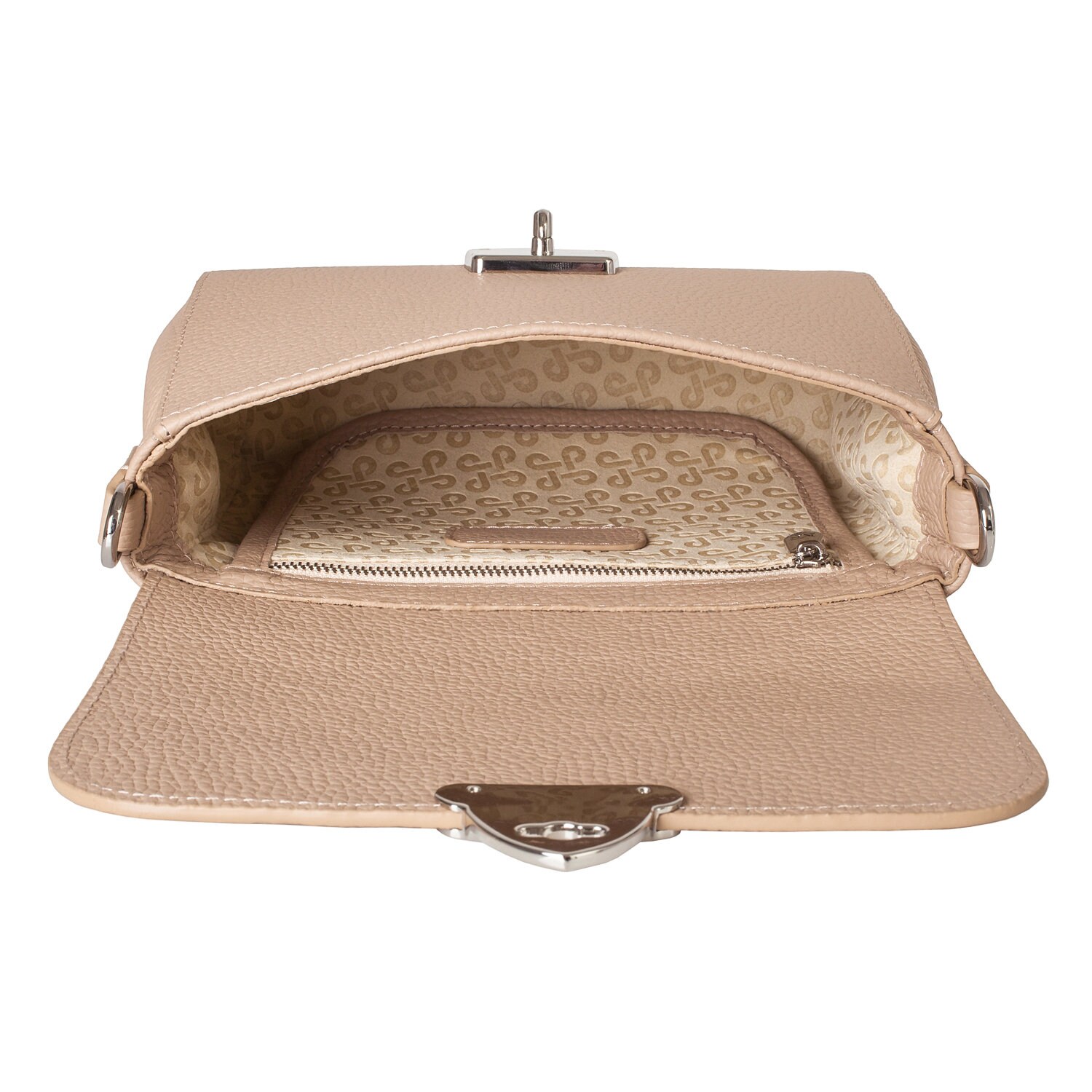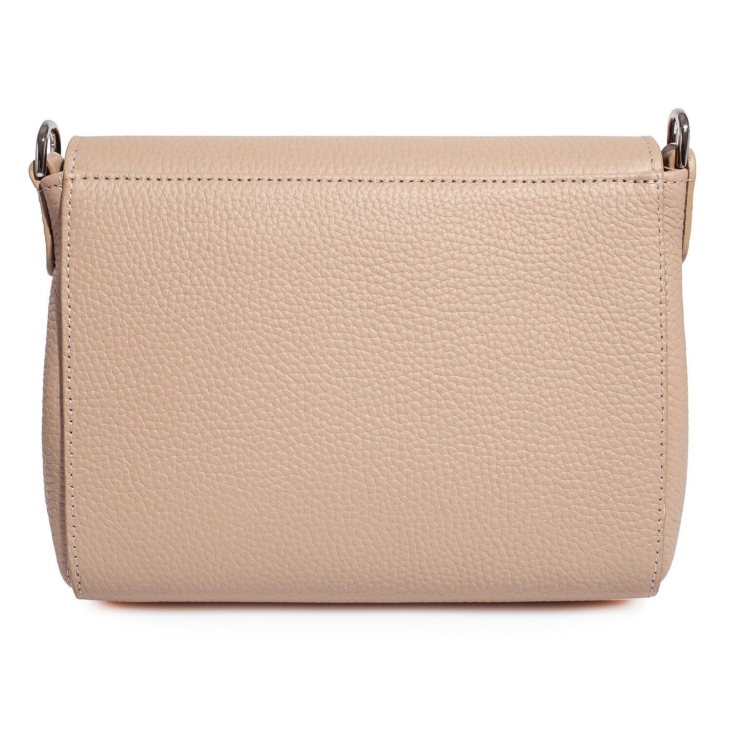 Beige genuine leather woman shoulder bag from ukrainian designer Katerina Fox. Fashionable and elegant modern bag KF for bright girls and women. This bag is able to attract attention and highlight your exquisite taste. Inside the bag is one large compartment and a convenient zippered pocket for small items, closes the bag on the clasp. The bag is comfortable to wear on the shoulder or across the shoulder.