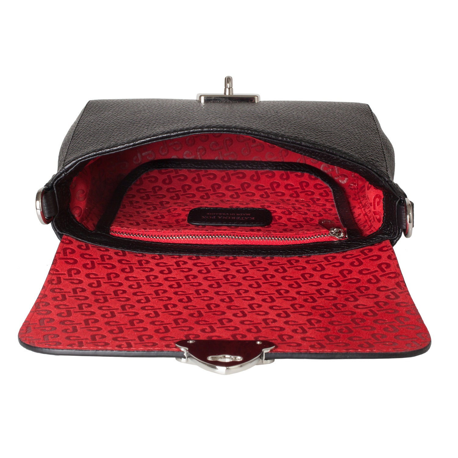 Black genuine leather woman shoulder bag from ukrainian designer Katerina Fox. Fashionable and elegant modern bag KF for bright girls and women. This bag is able to attract attention and highlight your exquisite taste. Inside the bag is one large compartment and a convenient zippered pocket for small items, closes the bag on the clasp. The bag is comfortable to wear on the shoulder or across the shoulder. If you are planning to buy excellent leather bag at an affordable price, this handbag is the right choice!