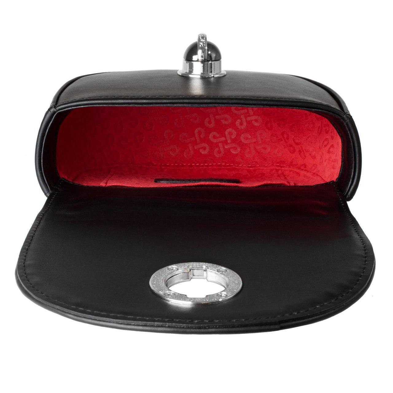 Black genuine leather woman shoulder bag from ukrainian designer Katerina Fox. Fashionable and elegant modern bag KF for bright girls and women. This bag is able to attract attention and highlight your exquisite taste. The internal space of a bag is equipped with one spacious compartment and one patch-pocket. The bag is closed with a clasp. There is a long handle that allows you to wear the bag on the shoulder. The kit also includes a storage bag.