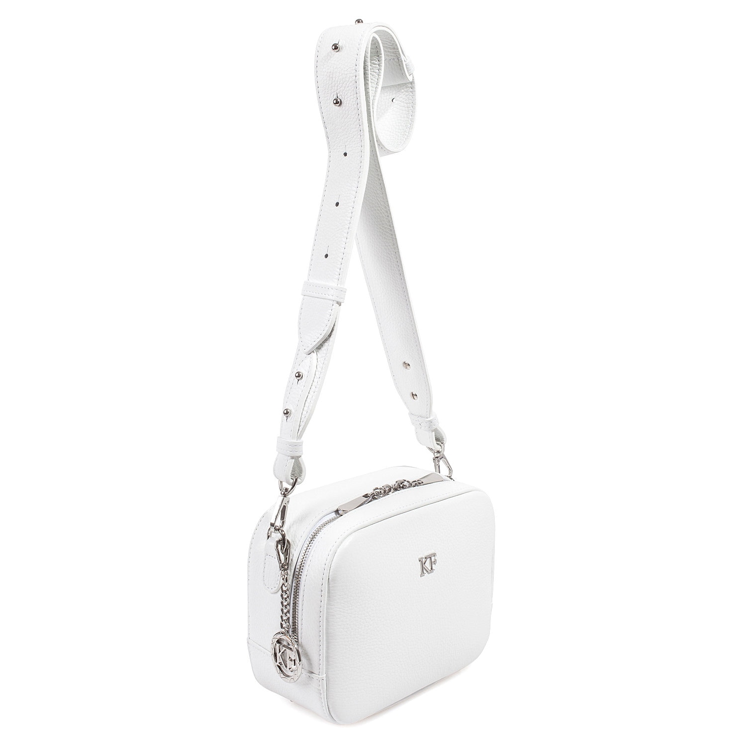 Black genuine leather woman crossbody bag from ukrainian designer Katerina Fox. Fashionable and elegant modern bag KF for bright girls and women. This bag is able to attract attention and highlight your exquisite taste. All accessories for Katerina Fox bags makes the same factory as for Michael §¬ors, Calvin Klein, DKNY and other famous brands.The internal space of a bag is equipped with one spacious compartment, four patch pockets for cards. The bag is closed on the button-magnet. The length of the strap is not adjustable. The kit also includes a storage bag.