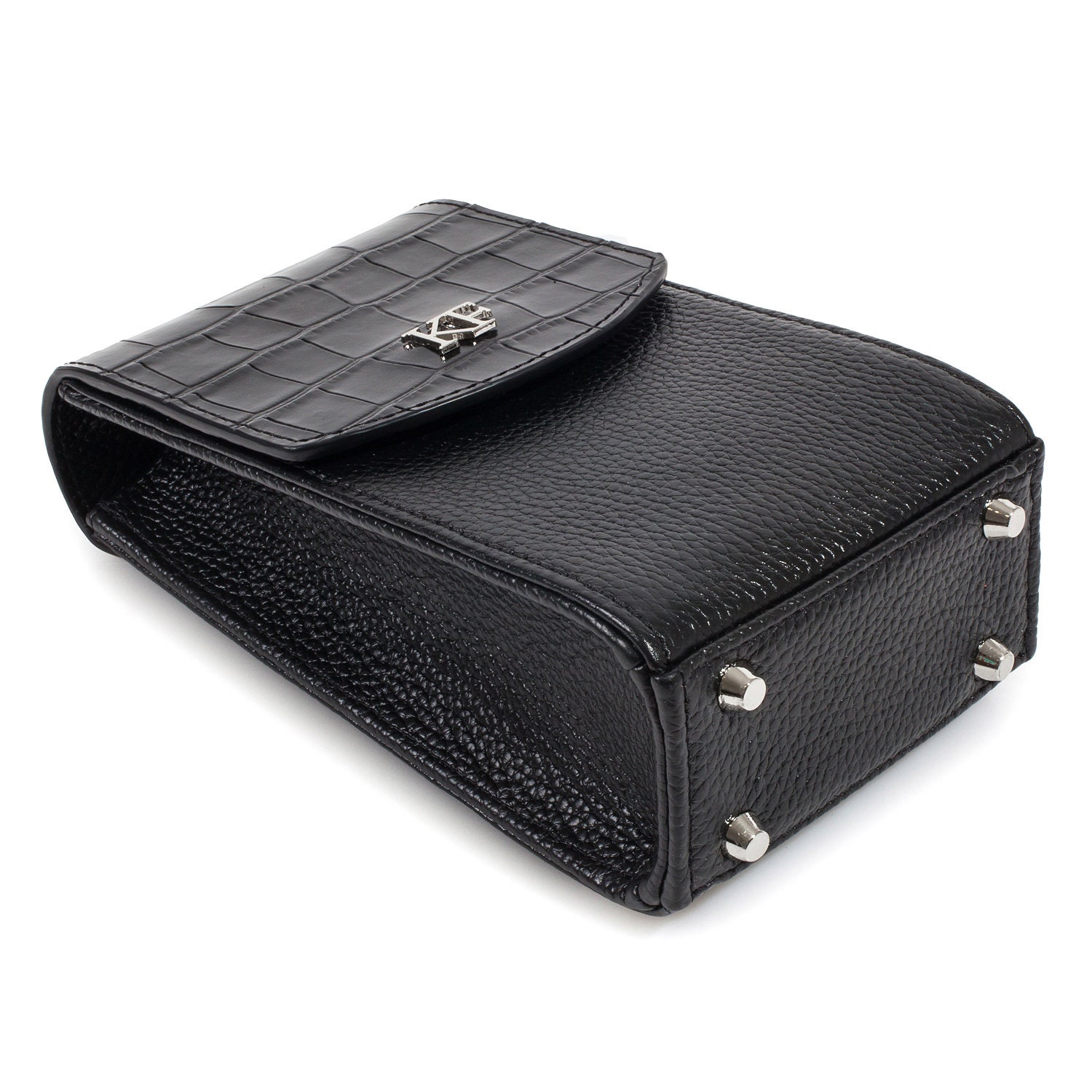 Finish: black genuine leather crocodile print