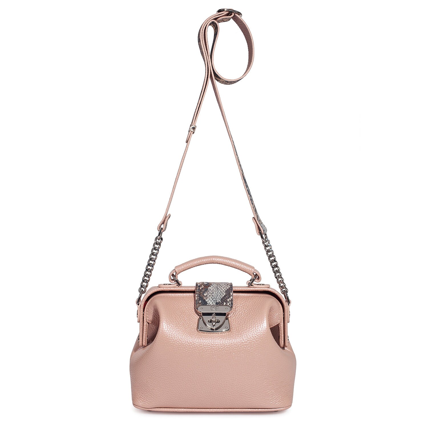 Beige pearl genuine leather handbag from ukrainian designer Katerina Fox. This model is designed for women who appreciate the sleek design combined with functionality and comfort. High-quality and reliable hardware ensure long service bags. The internal space of a bag is equipped with one spacious compartment and two patch-pockets and one zipper pocket. The bag is closed with a clasp. The bottom of the bag is protected with metal legs. There is a long handle that allows you to wear the bag on the shoulder. The kit also includes a storage bag.
