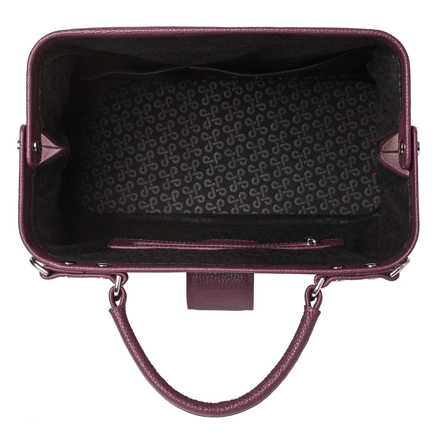 Women's leather doctor bag made of genuine leather, hardware with galvanic coating and microfiber lining. The internal space of a bag is equipped with one spacious compartment, two patch-pockets and one zipper pocket. The bag is closed with a clasp. The kit also includes a storage bag.