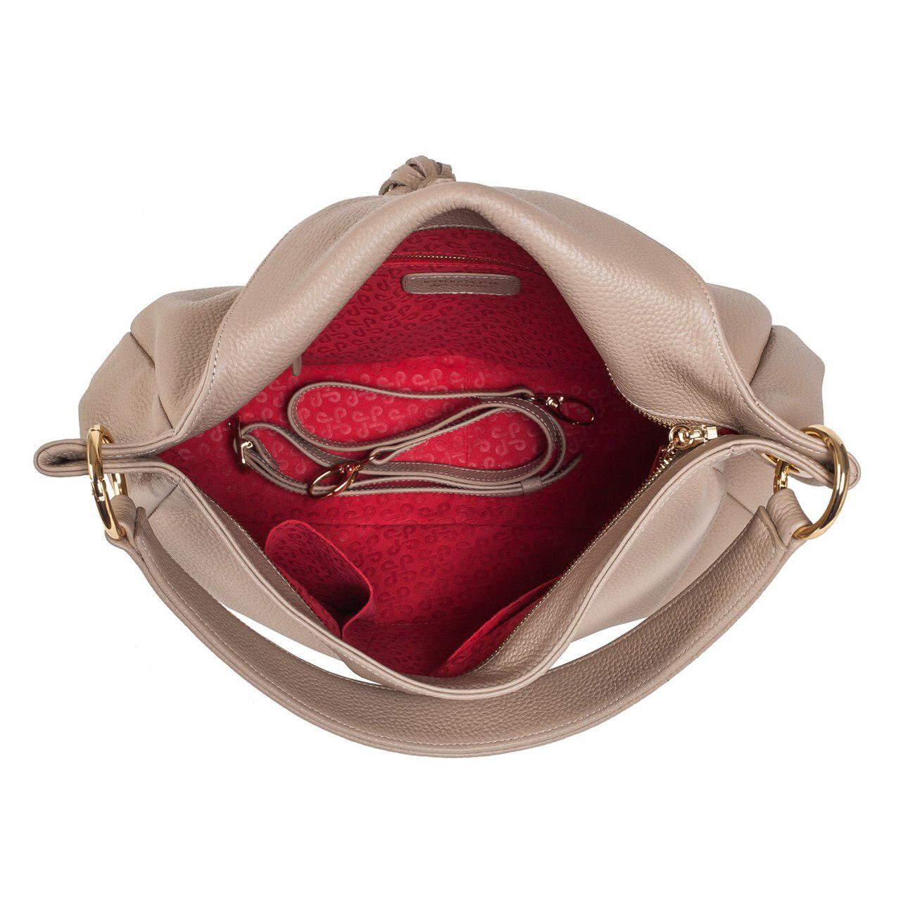 Beige genuine leather hobo handbag from ukrainian designer Katerina Fox. Stylish and original bag is made from excellent leather. The main highlight of this model is beautifully carved fittings on the valve and two leather tassels. The bag has a soft shape and an elongated handle, making it very comfortable to wear on the shoulder, the kit includes a long handle, so the bag can be worn over the shoulder. High quality and reliable hardware will provide long service life of the bag. Inside the bag one large compartment, two pouch pockets and one zip pocket, bag closes with a zipper.
